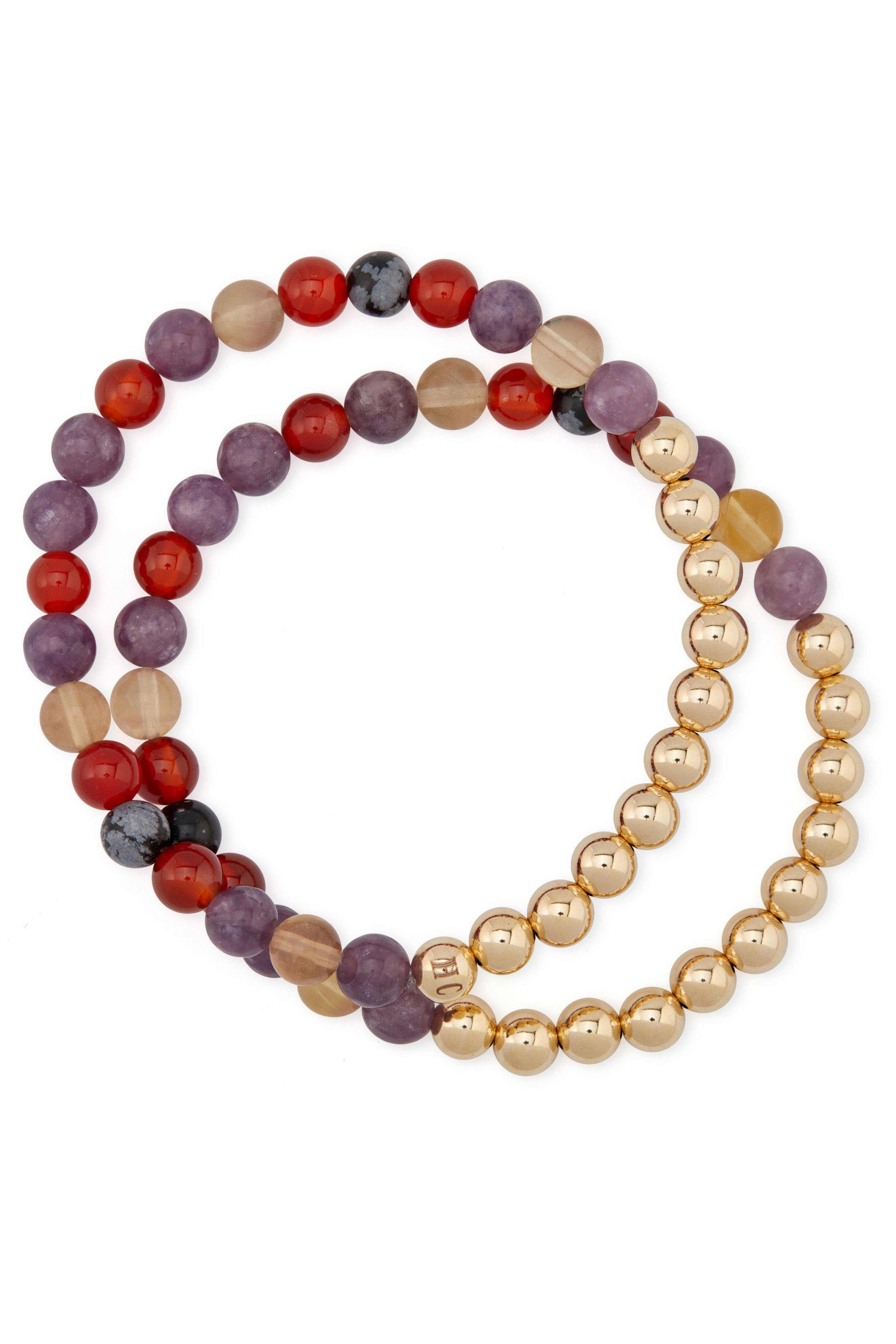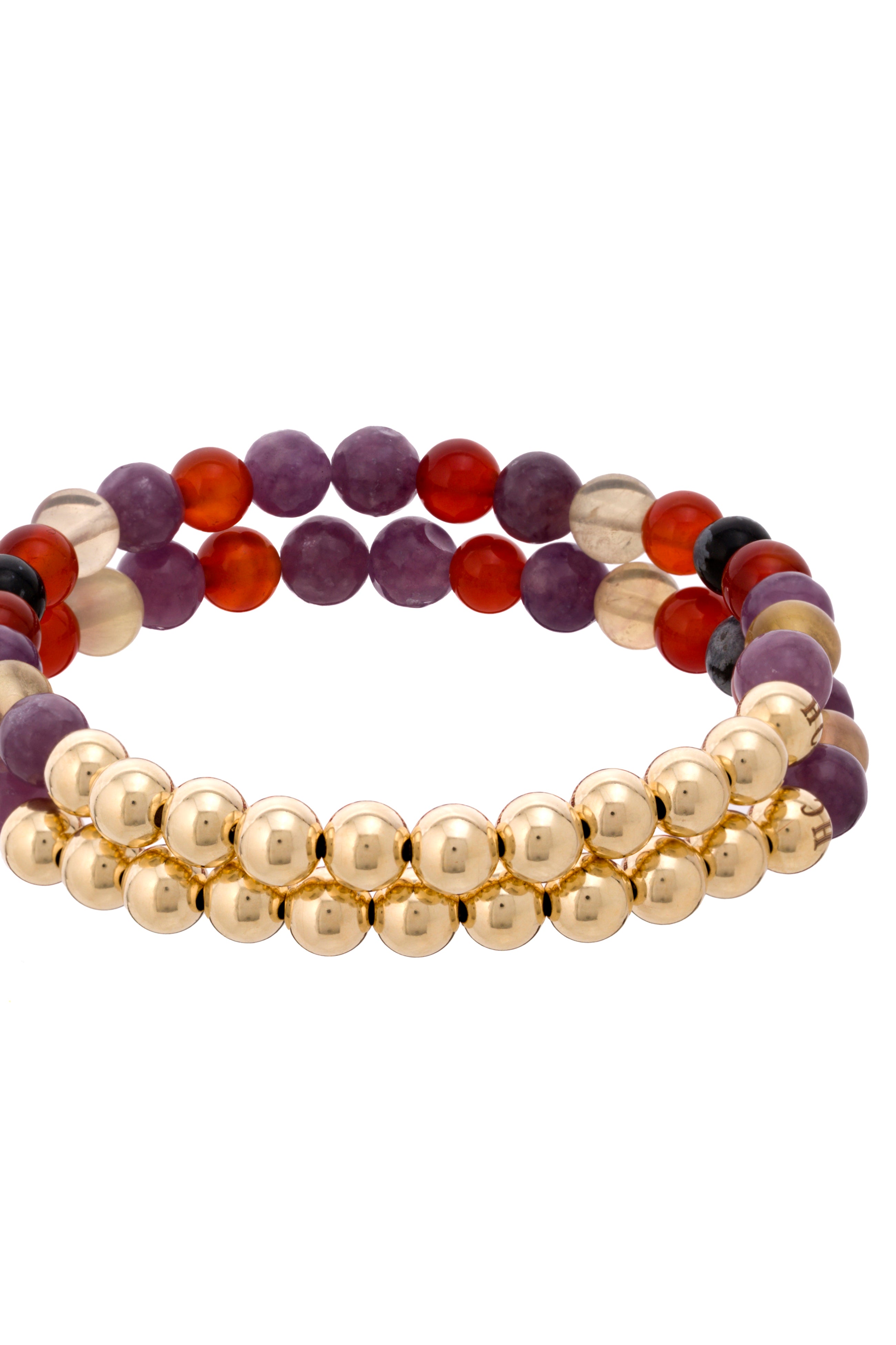 Sold as a set of two bracelets for maximum effect, our 6MM AAA+ quality polished stones and crystals are paired with 14K gold filled beads and are ethically crafted using the highest grade elasticated thread for durability, functionality and comfort.